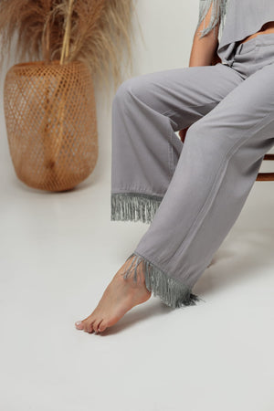 Un pantalón diseñado para destacar. Su corte recto estiliza la figura y los flecos en el bajo añaden un toque especial de movimiento y originalidad. Es lo suficientemente versátil para llevarlo con sandalias en días relajados o tacones en ocasiones especiales. Su diseño te permite crear looks tanto casuales como elegantes sin esfuerzo.