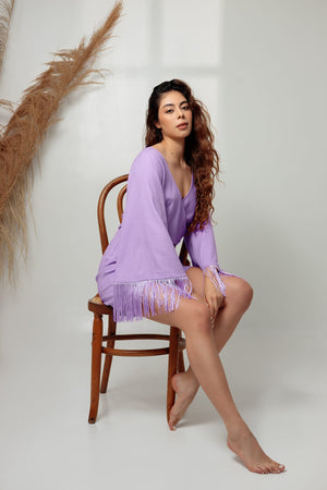 Mangas acampanadas con flecos en los puños para un movimiento elegante.