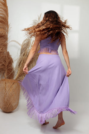 Un top diseñado para destacar, con un corte ajustado que realza la figura y detalles pensados para crear movimiento y sofisticación. Su escote en V profundo y cierre de broches delicados en la parte frontal aportan un toque elegante y moderno. Los flecos añaden textura y dinamismo, convirtiéndolo en una pieza ideal para quienes buscan un look audaz y versátil.